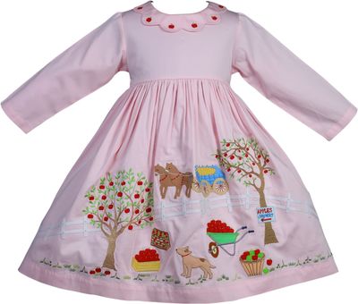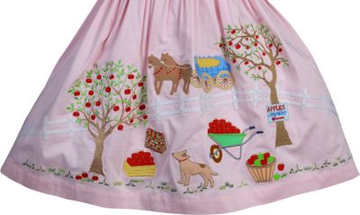 Pink Satin Apple Farm Embroidered Dress